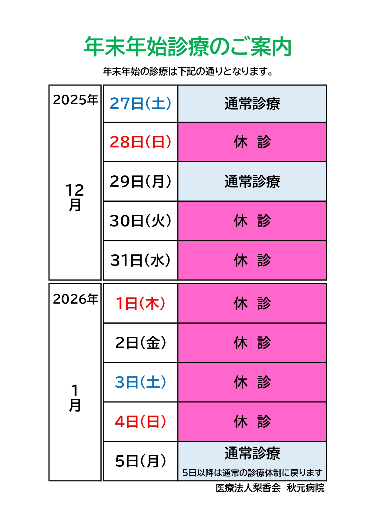 【診察時間】9:00〜12:00/13:30〜17:00 (整形外科のみ 13:30~16:30)【休診日】日曜・祝祭日・年末年始